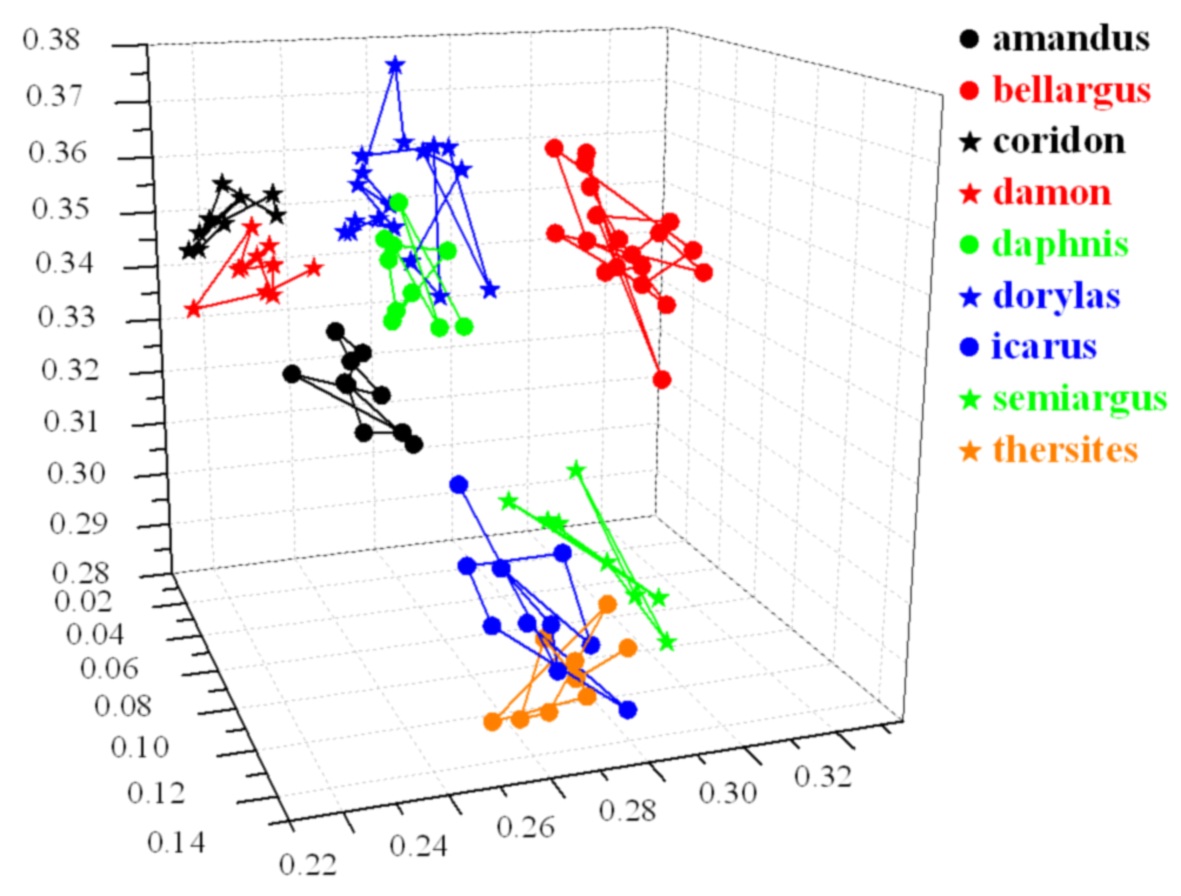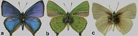 We measued and modeled this phenomenon on such an exceptional butterfly species, Albulina metallica, where the colors of both the upper and lower wing surfaces are