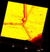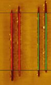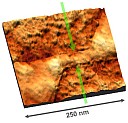 The AFM image shows a graphene/metal nanoparticle hybrid material fabricated by transferring