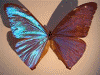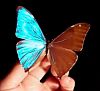 Left wing of this Morpho butterfly seems bright light, right wing seems brown in this image.